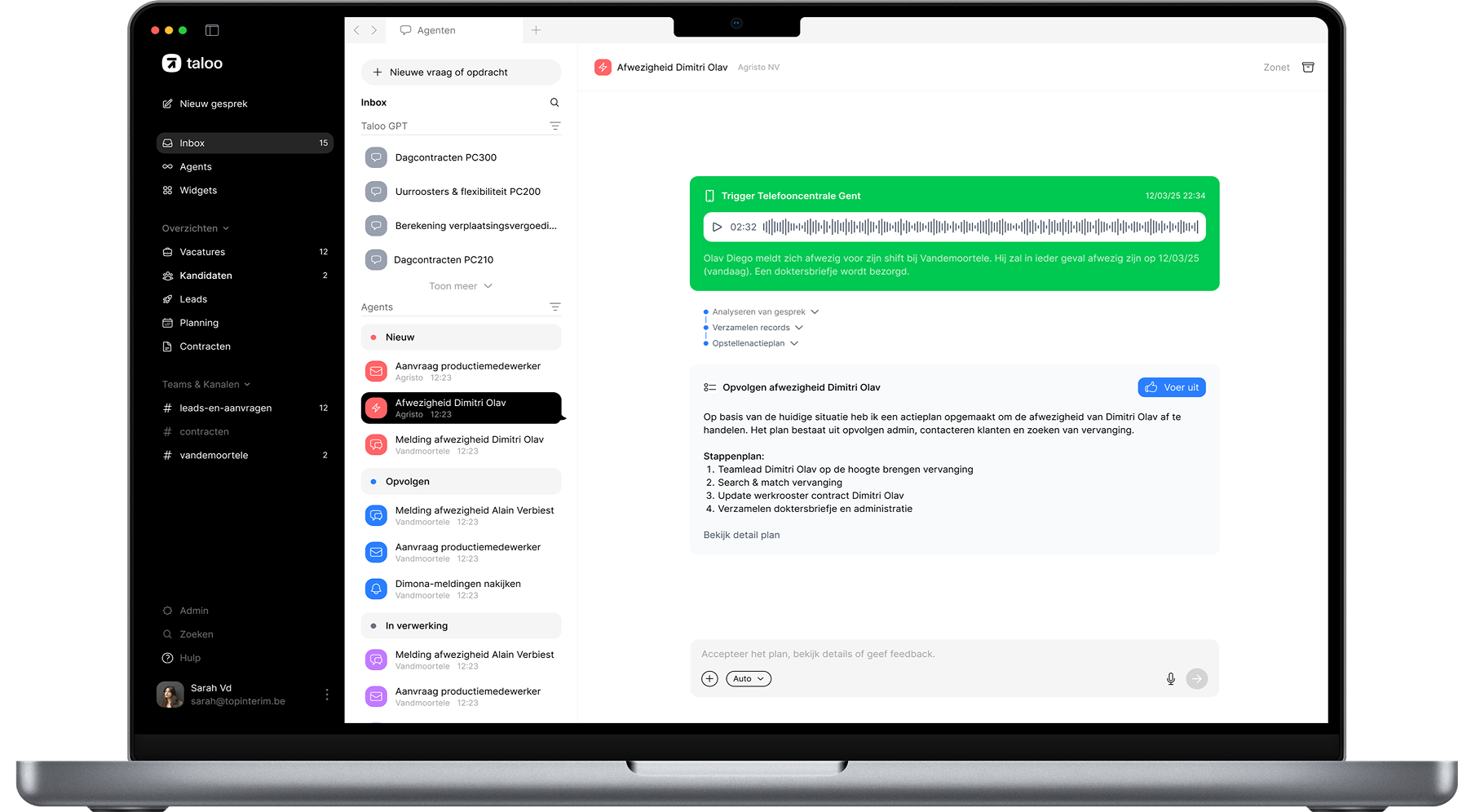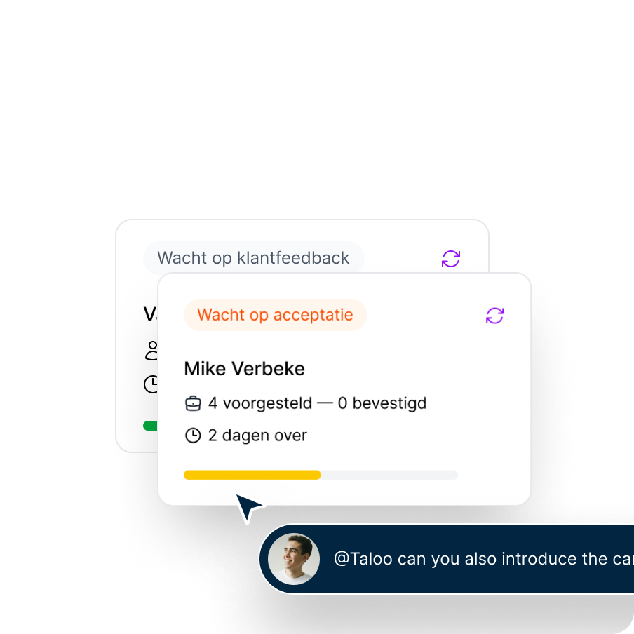 Taloo spots where things stall and proactively follows up — so no task gets forgotten and no candidate slips through.
